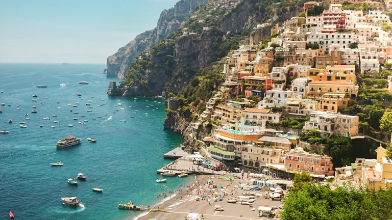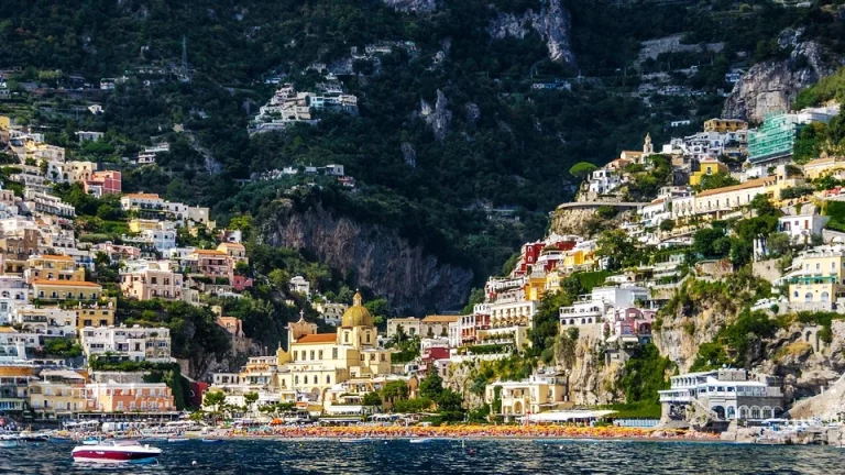 Positano è conosciuta come la “città verticale” per la sua conformazione che la vede svilupparsi arroccata su di un'altura, perpendicolare al mare.